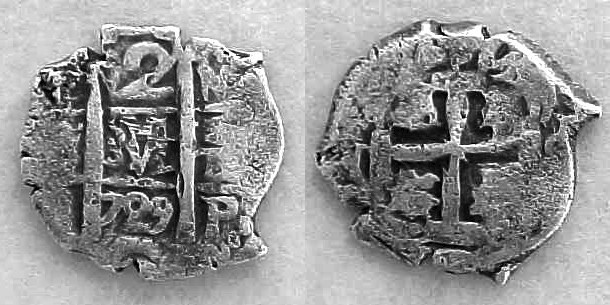 type 2 reales, Potosi mint, dated 1729, Philip V. Excellent pillars