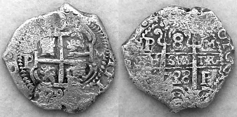 type 8 reales, Potosi mint, dated 1728, Philip V. Full cross with