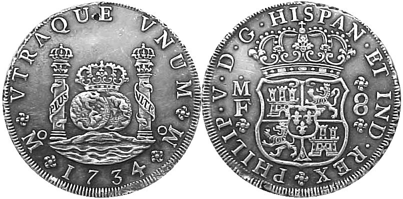 dated 1734, Philip V, assayer MF,